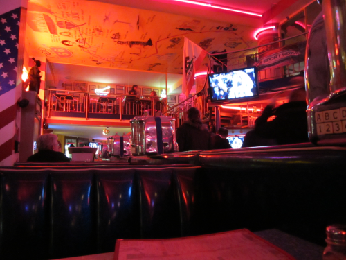 Ich habe mir für heute nach langem Suchen und Überlegen das “Fabulous Route 66 Diner” ausgesucht. Zum Einen, weil ich Lust auf typisch amerikanisches Essen hatte, zum Anderen, weil ich vor Kurzem daran vorbeigelaufen war und mir seine schöne Weihnachtsdeko aufgefallen war.