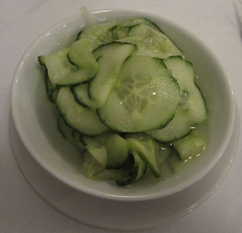 Als Beilage habe ich mir einen Gurlensalat ausgesucht, der hier süß angemacht ist; auch eine interessante Variante, die ich mir merken muss.